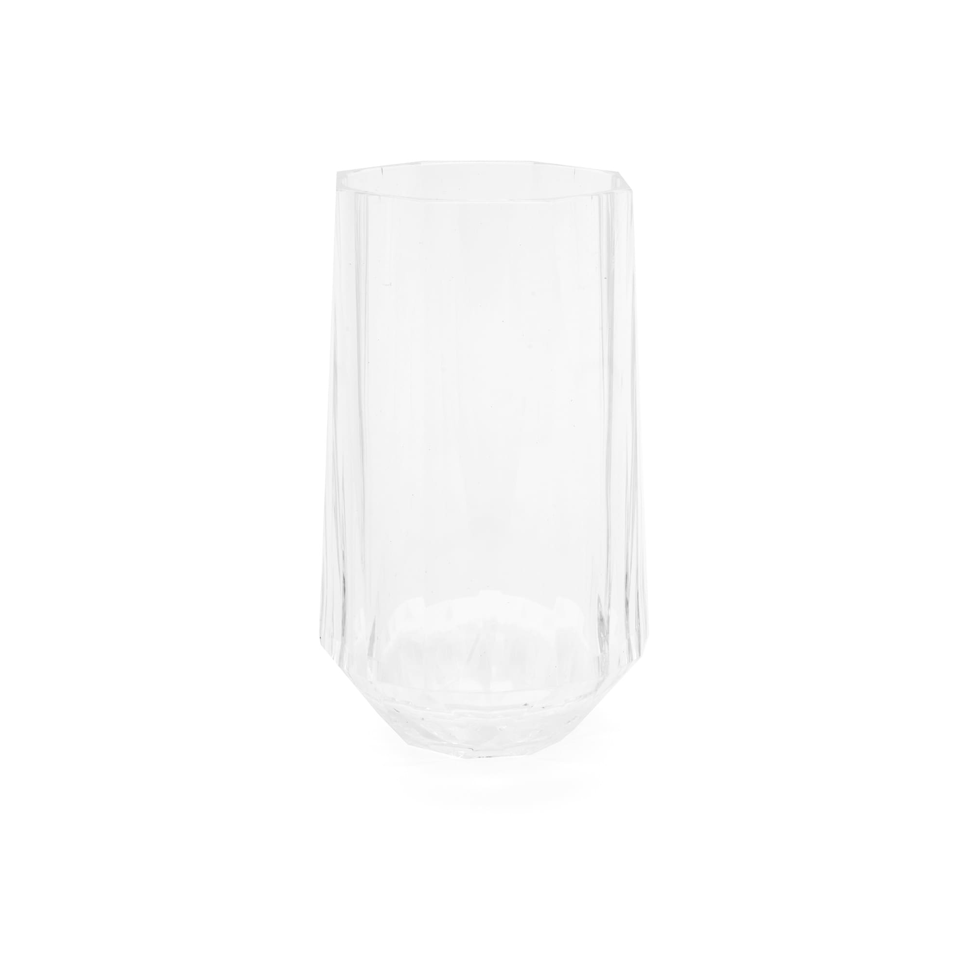 The IMPULSE! Onda Highball Glass showcases a modern geometric silhouette that brings contemporary style to any beverage service. Made from durable polycarbonate, it offers the clarity and faceted look of glass with added strength and shatter resistance.